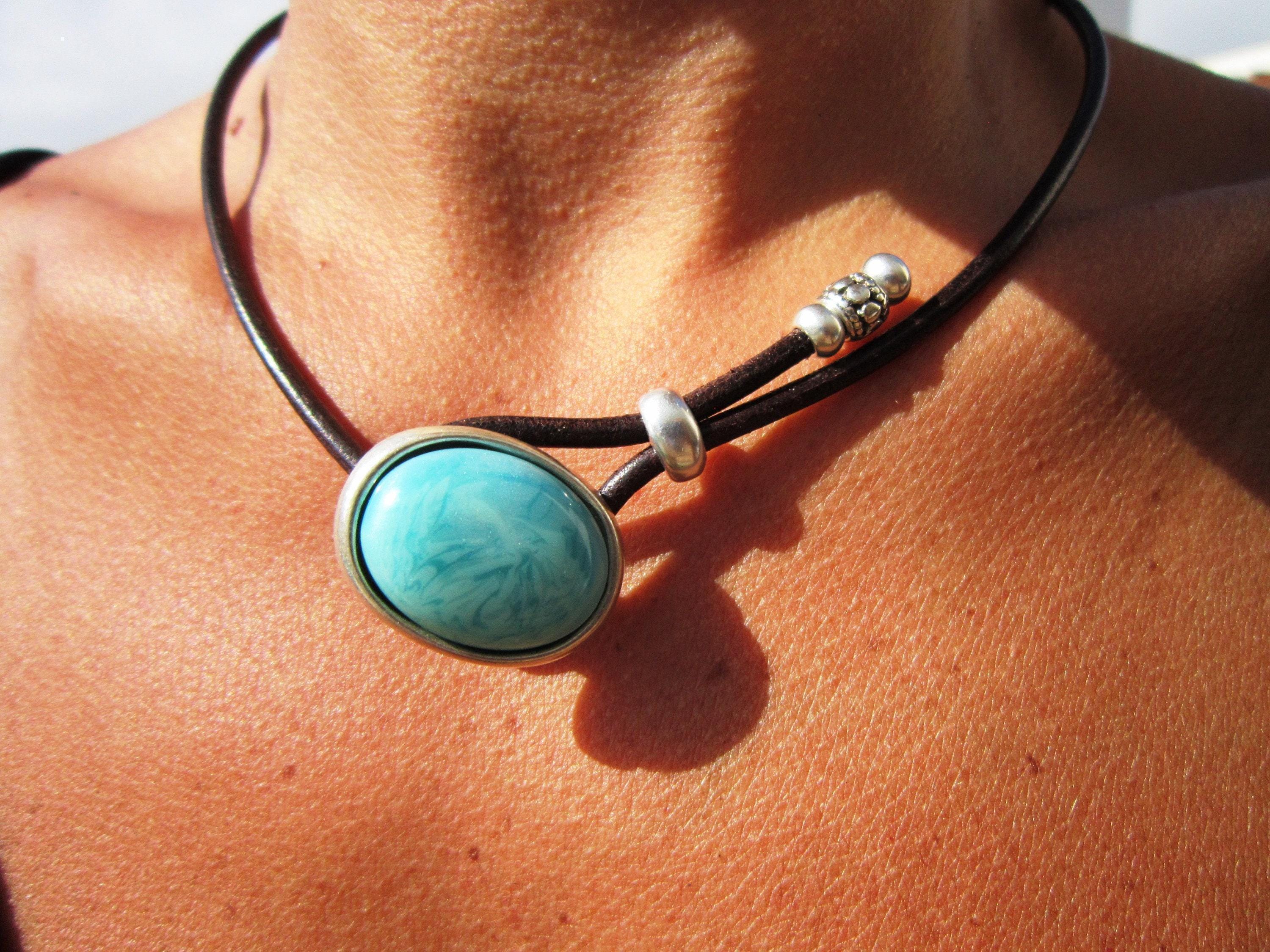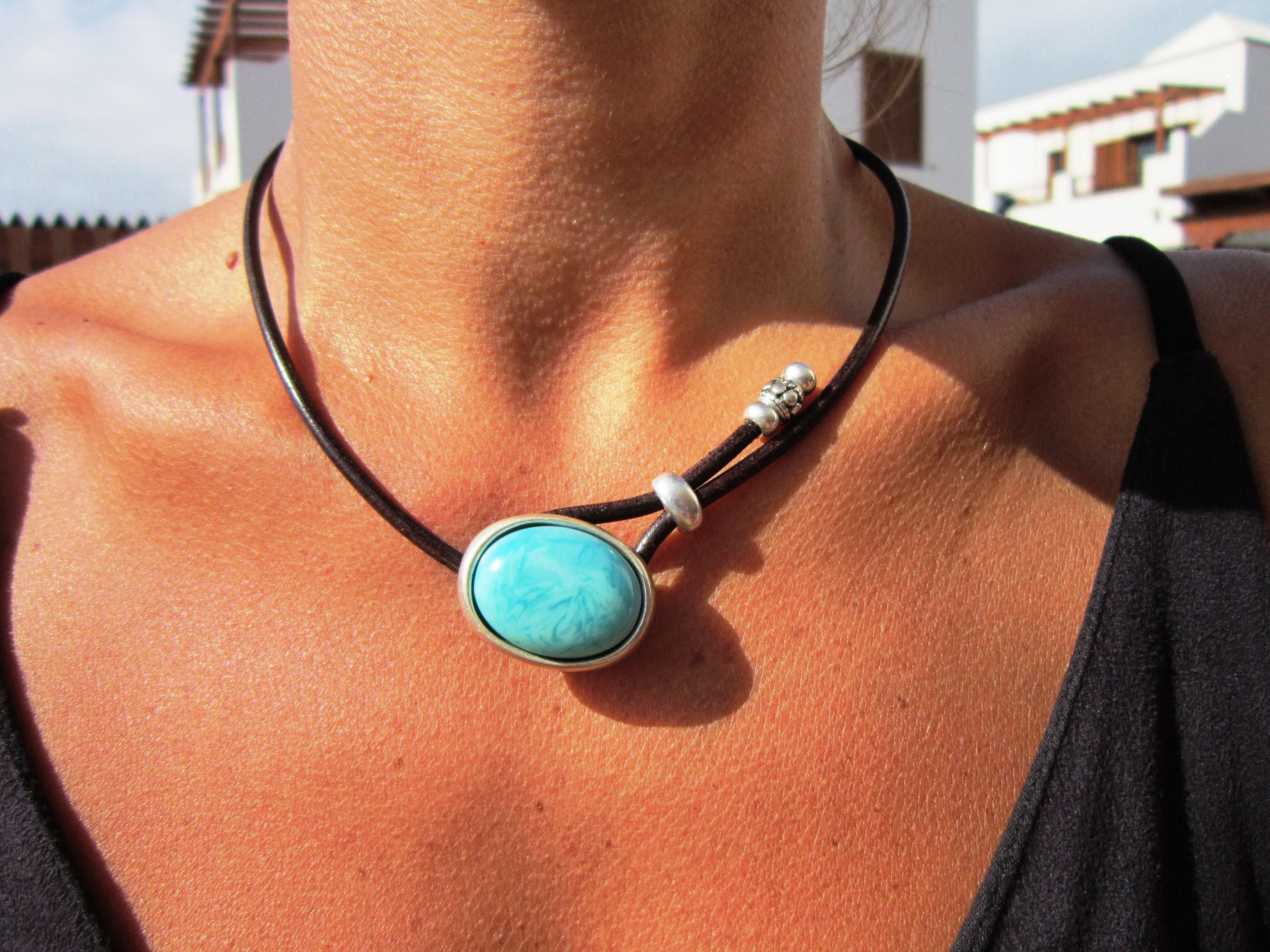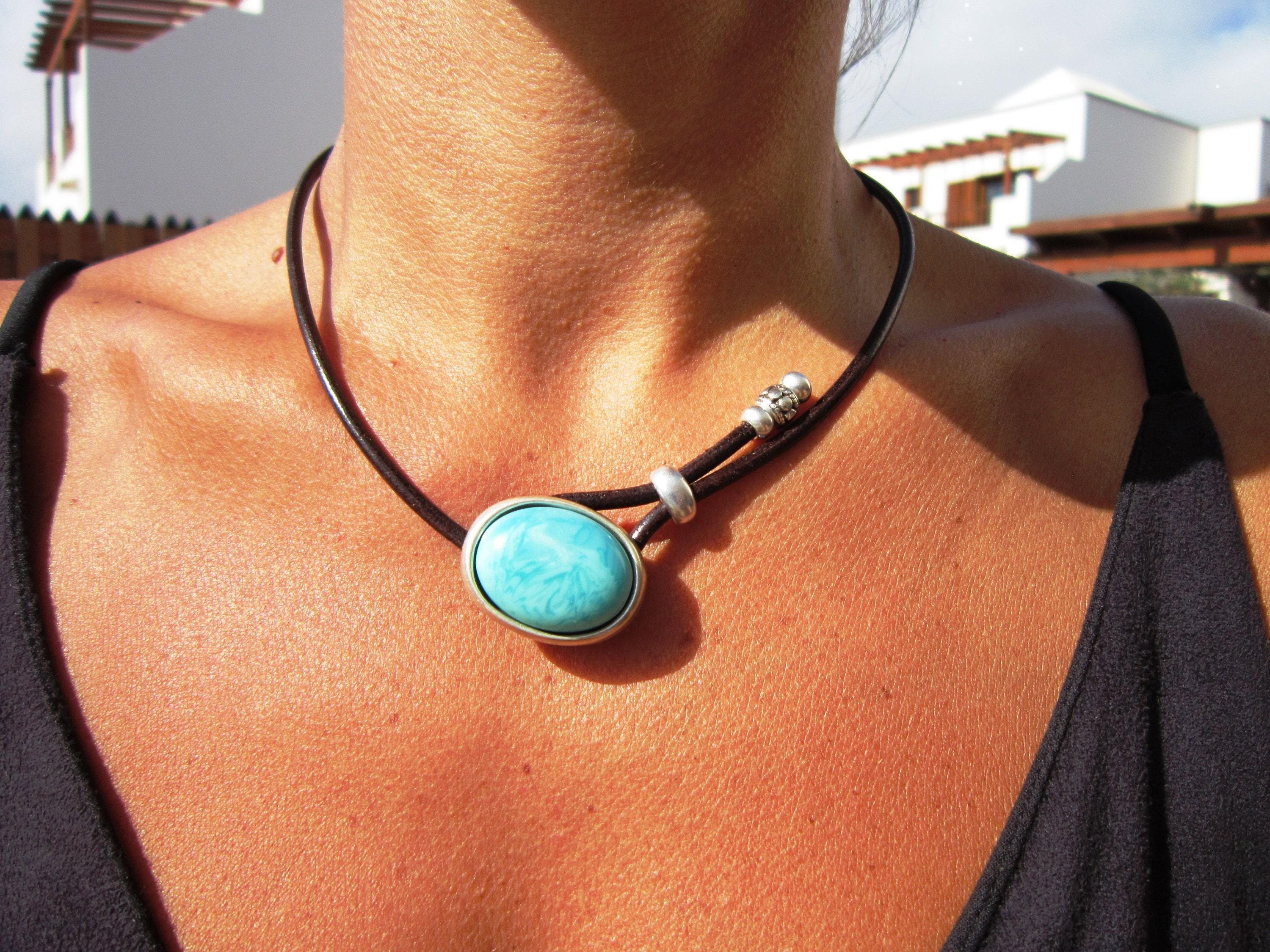 ♥ Elevate your style with this Turquoise Vegan cord silver beaded choker necklace • cruelty free Bohemian vegan jewelry