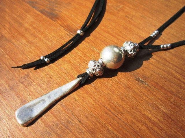 ♥ Elevate your style with this Vegan cord silver beaded pendant necklace • cruelty free Bohemian vegan jewelry
