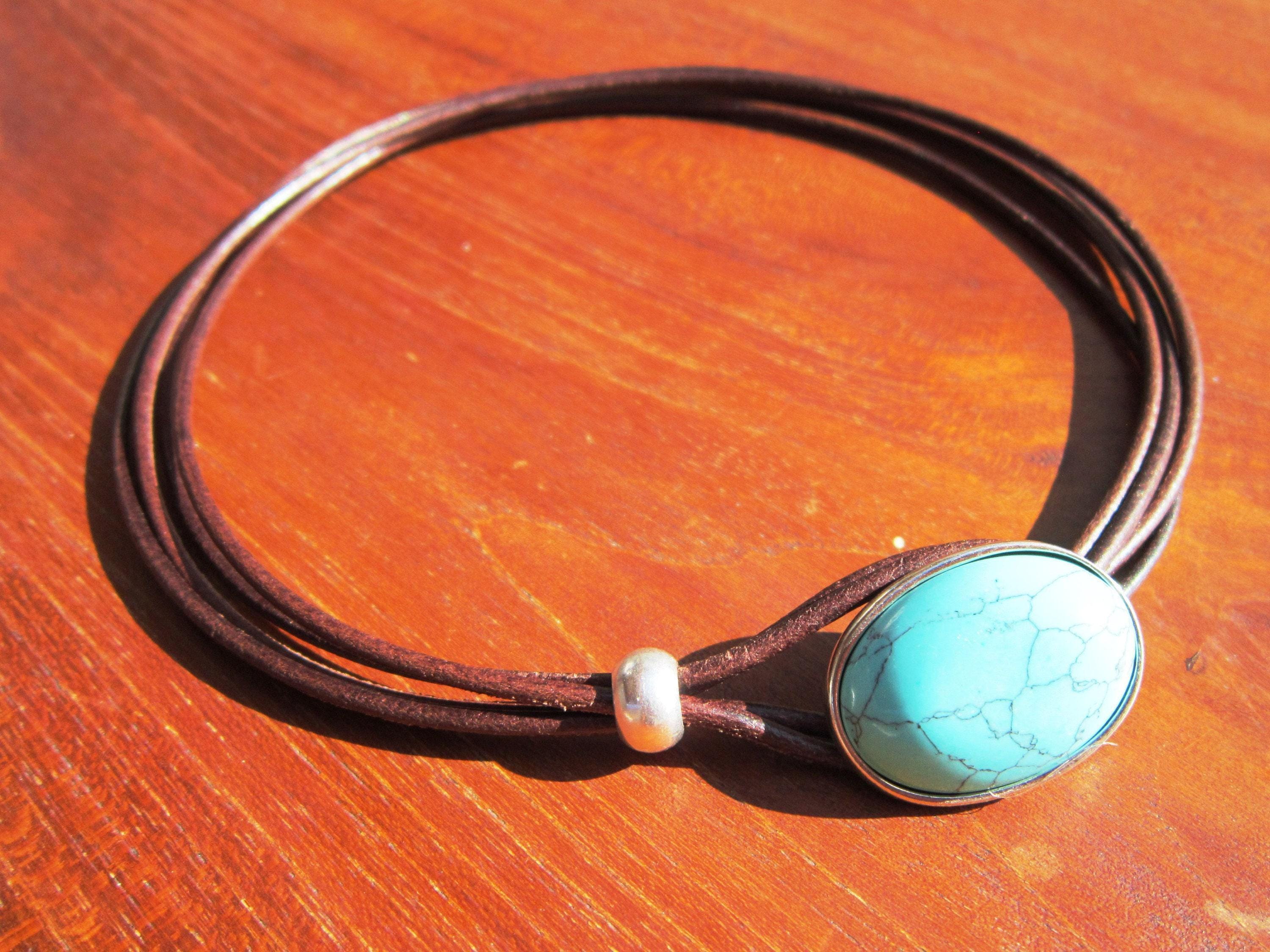♥ Elevate your style with this Turquoise Vegan cord silver beaded choker necklace • cruelty free Bohemian vegan jewelry