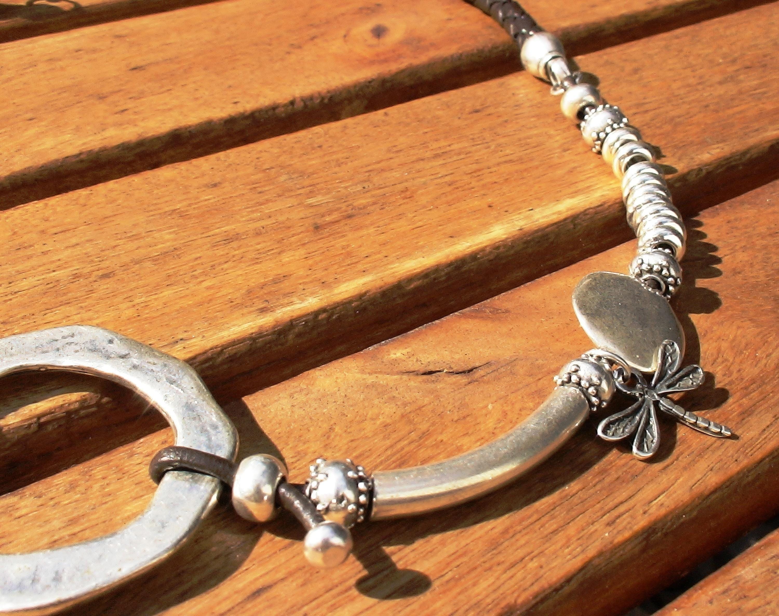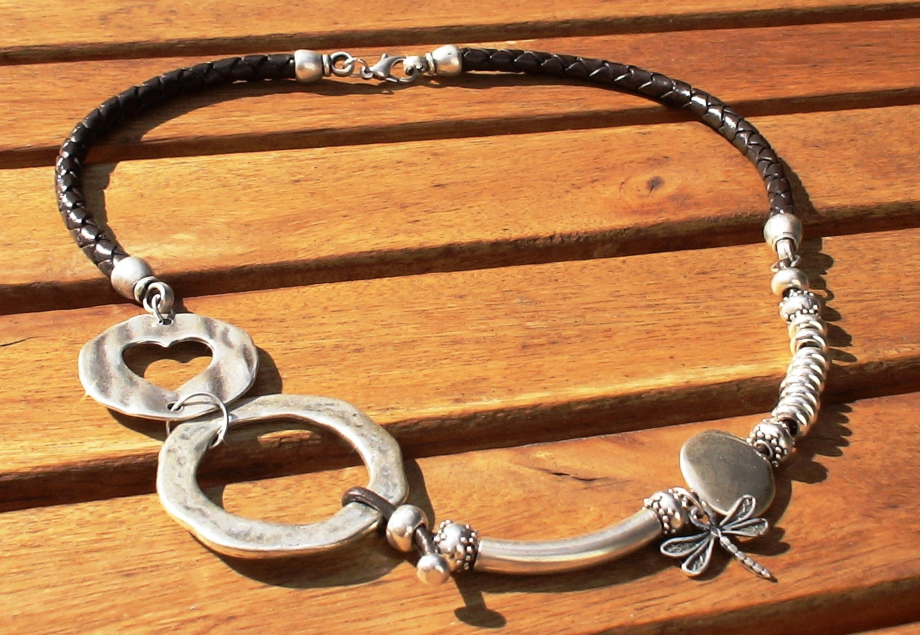 To preserve the look of your leather and silver jewelry, avoid water, cosmetics, and cleaning products. Always store your jewelryin a dry place and use a soft cloth to clean silver parts. Leather may naturally darken slightly over time, giving your jewelry a unique, lived-in feel.