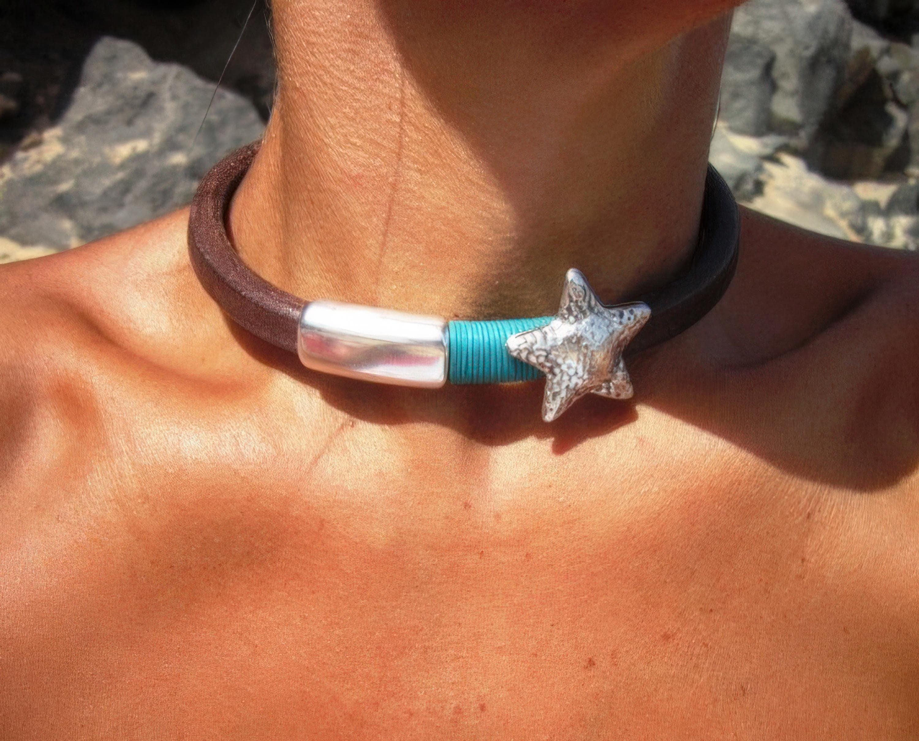 ♥ This Statement silver beaded leather choker star necklace is part of our best selling items, featuring a starfish necklace in this design, a perfect blend of timeless style handmade beach Shell Summer jewelry fro top sellers jewelry. Designed as a delicate charm necklace, a layered pendant necklace, or a bold statement necklace perfect as Couples Necklace it’s available in multiple lengths to match your style. at KEKUGI you can find pendant necklaces, beaded necklaces, charm necklaces, choker necklaces, multi-strand necklaces and lariat & Y necklaces, unique bohemian summer jewelry designs.
