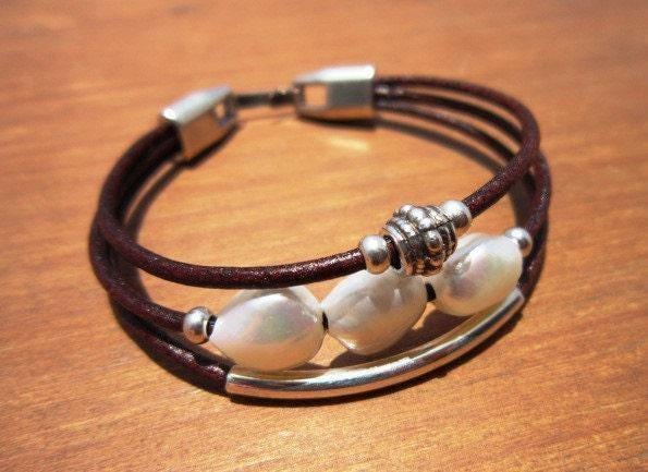 Beaded Leather Bracelet Personalized Gifts • Silver Custom Bracelet • Personalized Handmade Jewelry Gift for Her by Kekugi Bohemian jewelry
