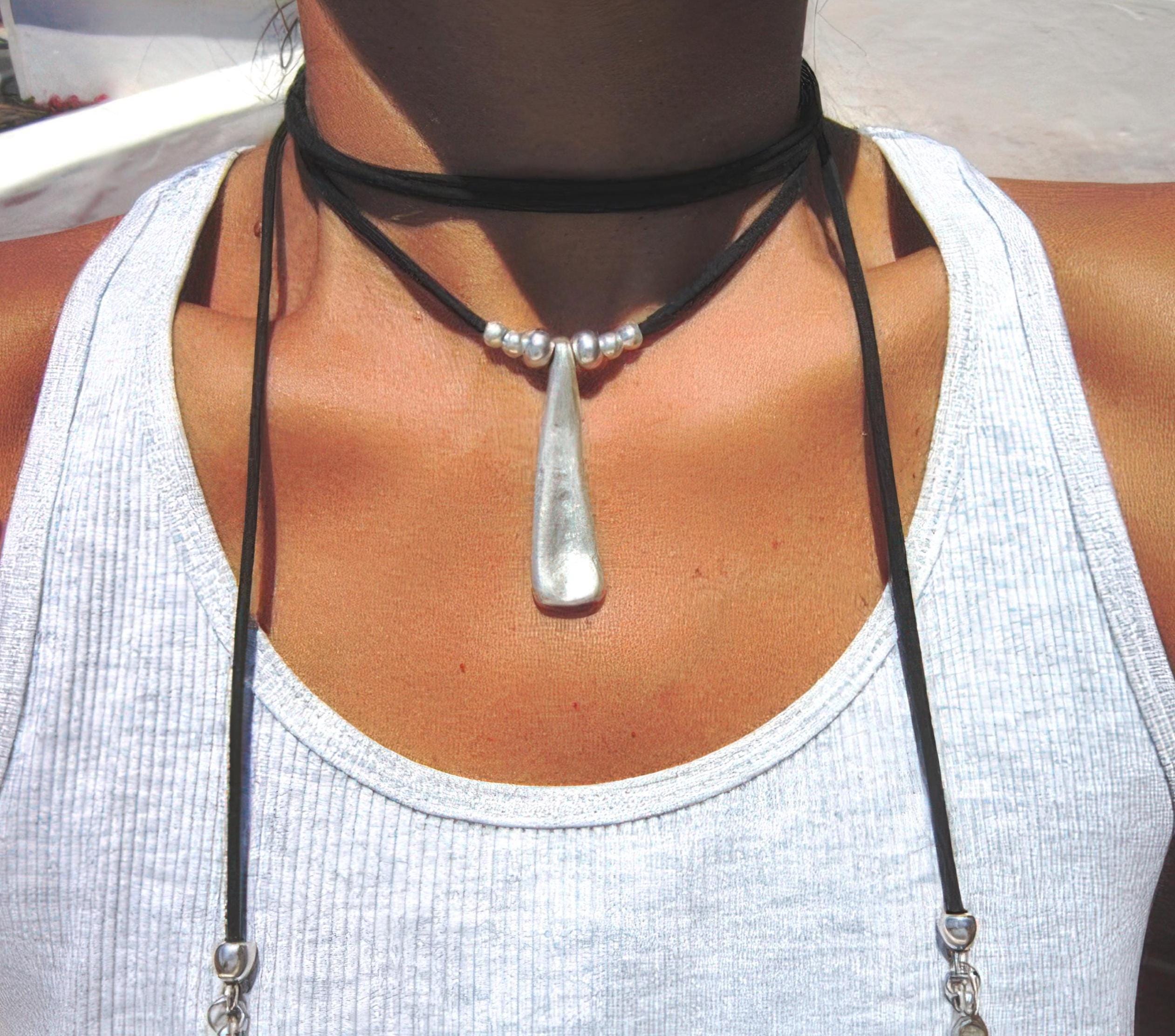 ♥ Elevate your style with these Chunky Statement Pendant Necklace, Silver Beaded and Leather Charm necklace layered in a bold statement piece for everyday style. Part of our best selling items is a perfect blend of timeless style handmade neotribal jewelry. Silver necklaces for women made to size to match your style. Designed as a delicate simple charm necklace, a layered pendant necklace, or a bold statement necklace, it’s available in multiple lengths. at KEKUGI you can find pendant necklaces, beaded necklaces, charm necklaces, choker necklaces, multi-strand necklaces and lariat & Y necklaces, Unique Bohemian jewelry top sellers designs.