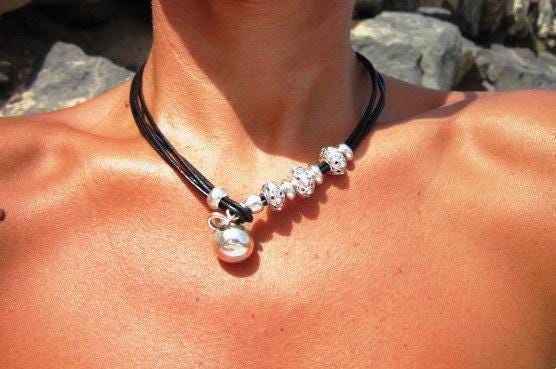 ♥ This Statement silver beaded leather choker necklace is part of our best selling items, a perfect blend of timeless style handmade jewelry. Silver matching necklaces for women made to size to match your style. Designed as a delicate charm necklace, a layered pendant necklace, or a bold statement necklace perfect as Couples Necklace it’s available in multiple lengths to match your style. at KEKUGI you can find pendant necklaces, beaded necklaces, charm necklaces, choker necklaces, multi-strand necklaces and lariat & Y necklaces, unique bohemian summer jewelry designs.