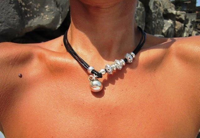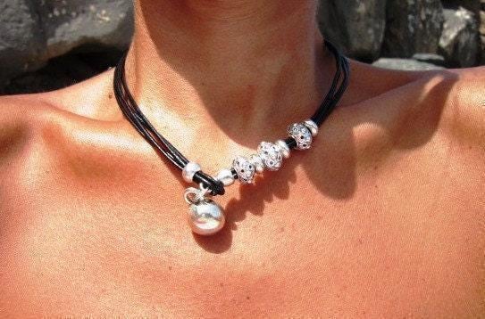 ♥ This Statement silver beaded leather choker necklace is part of our best selling items, a perfect blend of timeless style handmade jewelry. Silver matching necklaces for women made to size to match your style. Designed as a delicate charm necklace, a layered pendant necklace, or a bold statement necklace perfect as Couples Necklace it’s available in multiple lengths to match your style. at KEKUGI you can find pendant necklaces, beaded necklaces, charm necklaces, choker necklaces, multi-strand necklaces and lariat & Y necklaces, unique bohemian summer jewelry designs.
