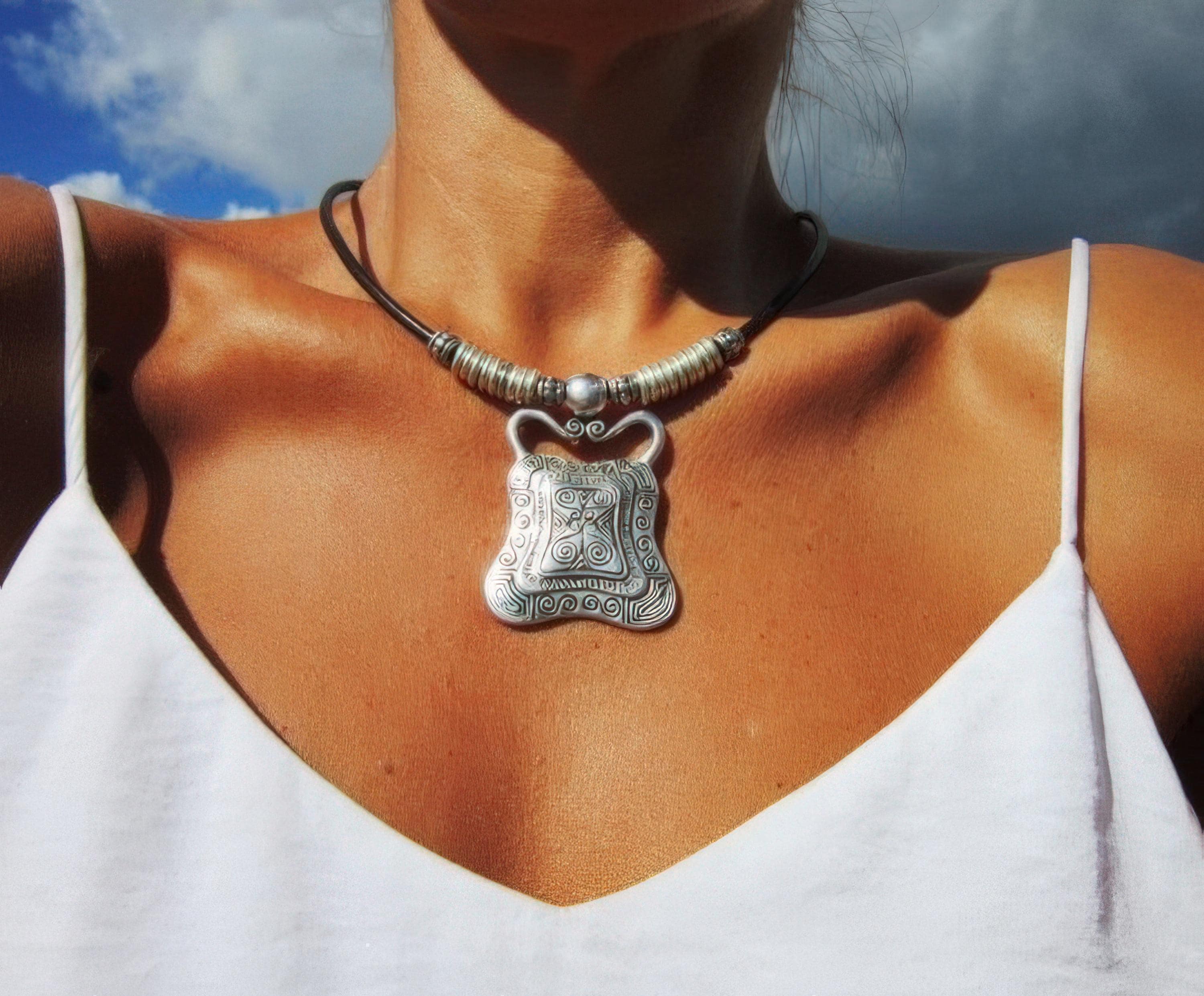 To preserve the look of your leather and silver jewelry, avoid water, cosmetics, and cleaning products. Always store your jewelryin a dry place and use a soft cloth to clean silver parts. Leather may naturally darken slightly over time, giving your jewelry a unique, lived-in feel.