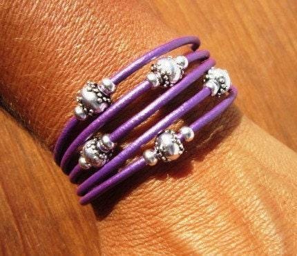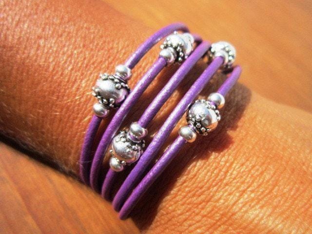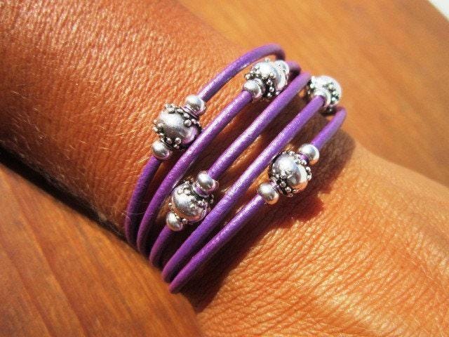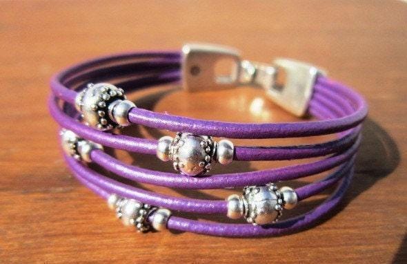 Leather & Silver Charm Beaded Bracelet • Handmade Jewelry Gift for Her • Custom Bracelet Gift • Personalized Jewelry Gifts by Kekugi