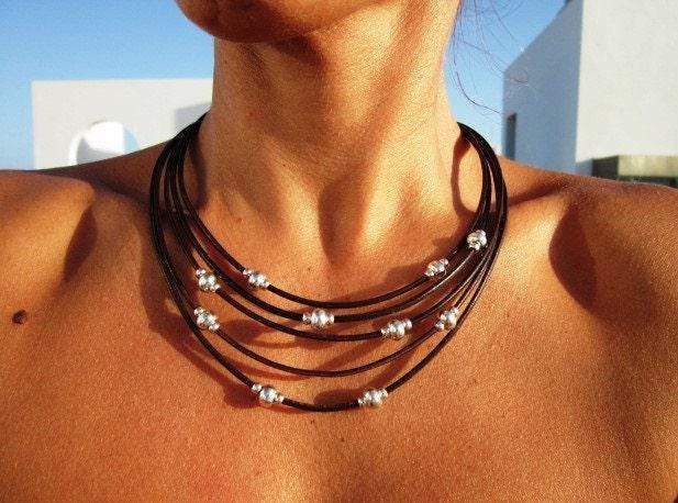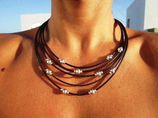 ♥ This Statement layered leather and silver beaded pendant necklace is part of our best selling items, a perfect blend of timeless style handmade jewelry. Silver necklaces for women made to size to match your style. Designed as a delicate charm necklace, a layered pendant necklace or a bold Couples necklace, it’s available in multiple lengths to match your style. at KEKUGI you can find pendant necklaces, beaded necklaces, charm necklaces, choker necklaces, multi-strand layered necklaces and lariat & Y necklaces, unique bohemian jewelry Best selling items designs.