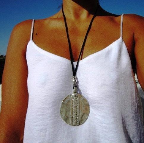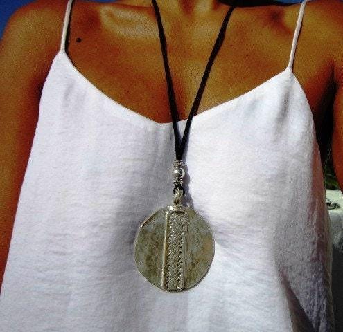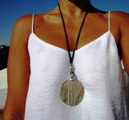 Boho Leather Beaded Silver Pendant Necklaces • Long Statement Chunky Charm Necklace Gift for Her • Bohemian Jewelry by Kekugi top sellers
