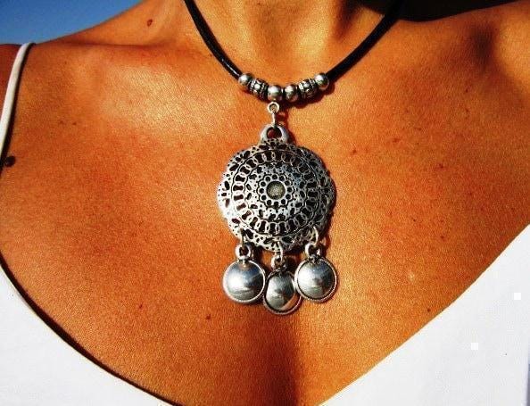 ♥ This Statement leather and silver beaded pendant necklace is part of our best selling items, a perfect blend of timeless style handmade jewelry. Silver necklaces for women made to size to match your style. Designed as a delicate charm necklace, a layered pendant necklace or a bold Couples necklace, it’s available in multiple lengths to match your style. at KEKUGI you can find pendant necklaces, beaded necklaces, charm necklaces, choker necklaces, multi-strand layered necklaces and lariat & Y necklaces, unique bohemian jewelry Best selling items designs.