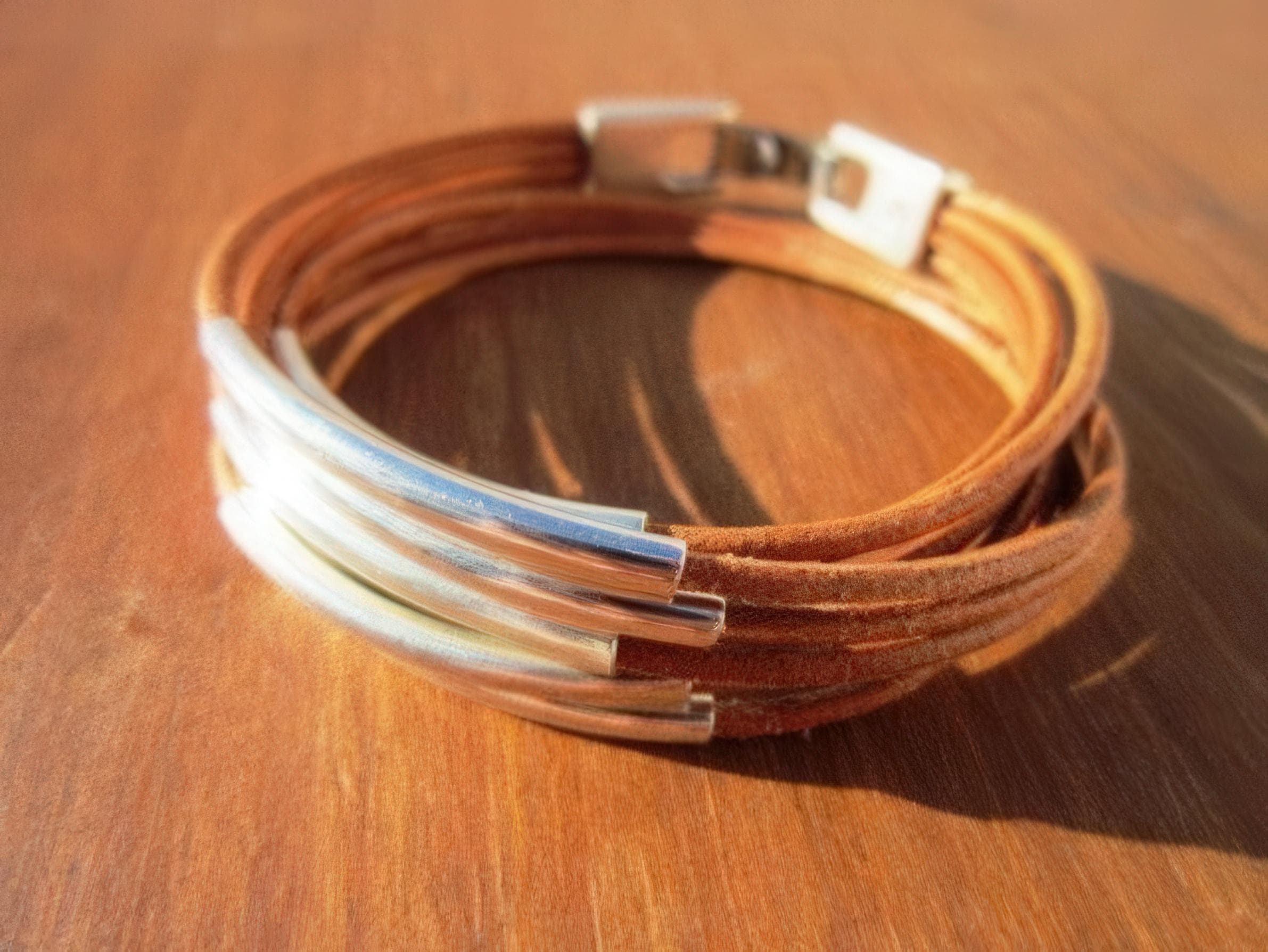 To preserve the look of your leather and silver jewelry, avoid water, cosmetics, and cleaning products. Always store your jewelryin a dry place and use a soft cloth to clean silver parts. Leather may naturally darken slightly over time, giving your jewelry a unique, lived-in feel.