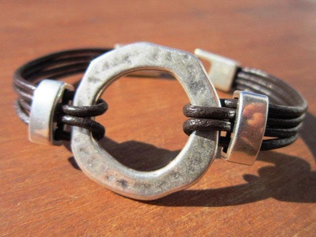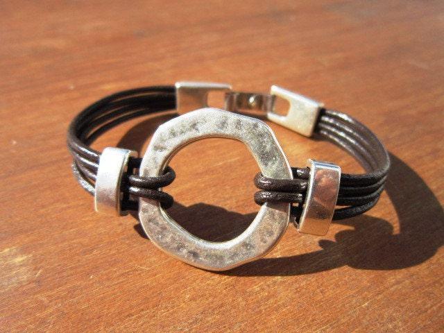 Bohemian Leather and Silver Beaded Bracelet Jewelry • Handmade Personalized Jewelry Gifts • Custom Bracelet Gift for Her by Kekugi