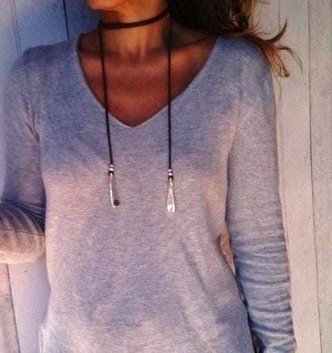 This necklace is made of genuine leather and silver plated beads. All silver pieces are subjected to an anti-allergic process ( nickel and lead free) with a silver plating of 8 microns of sterling silver.