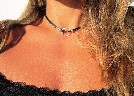 Silver necklaces for women made to size to match your style. Designed as a delicate charm leather and silver choker necklace eternity collar.