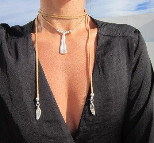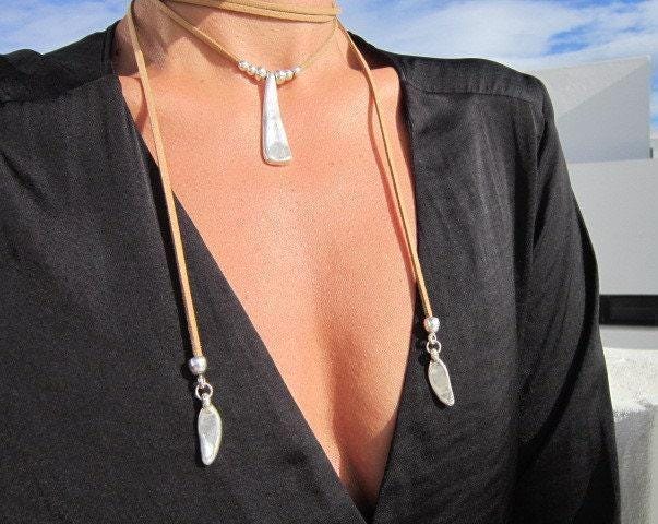 Statement Silver Chunky Pendant leather Necklace • Bohemian Neotribal Jewelry • Custom necklace Best Selling Items • Host Gift for Her