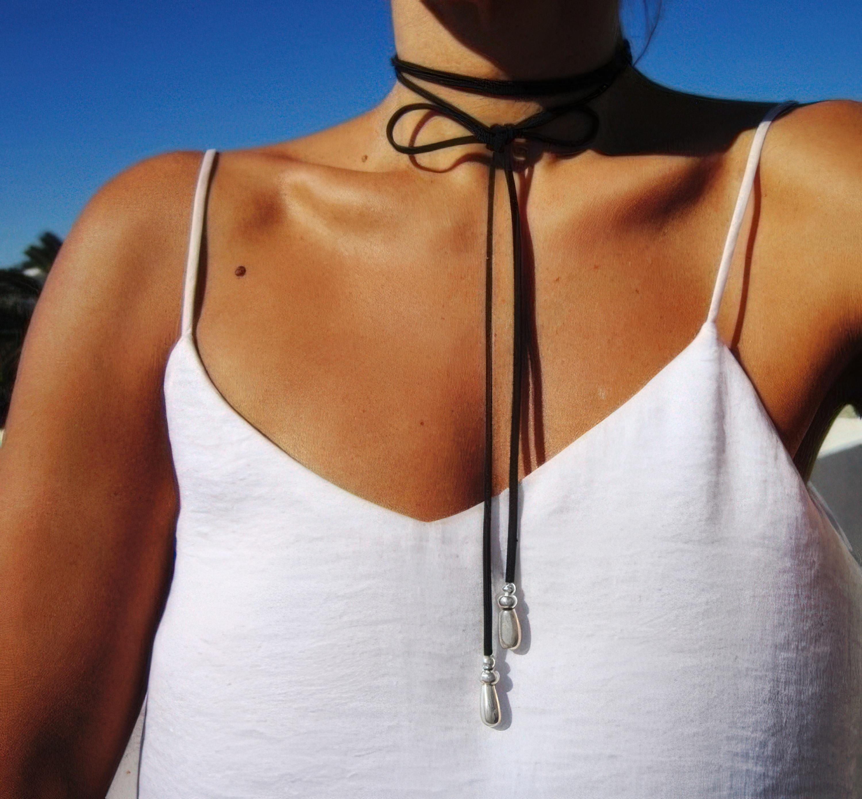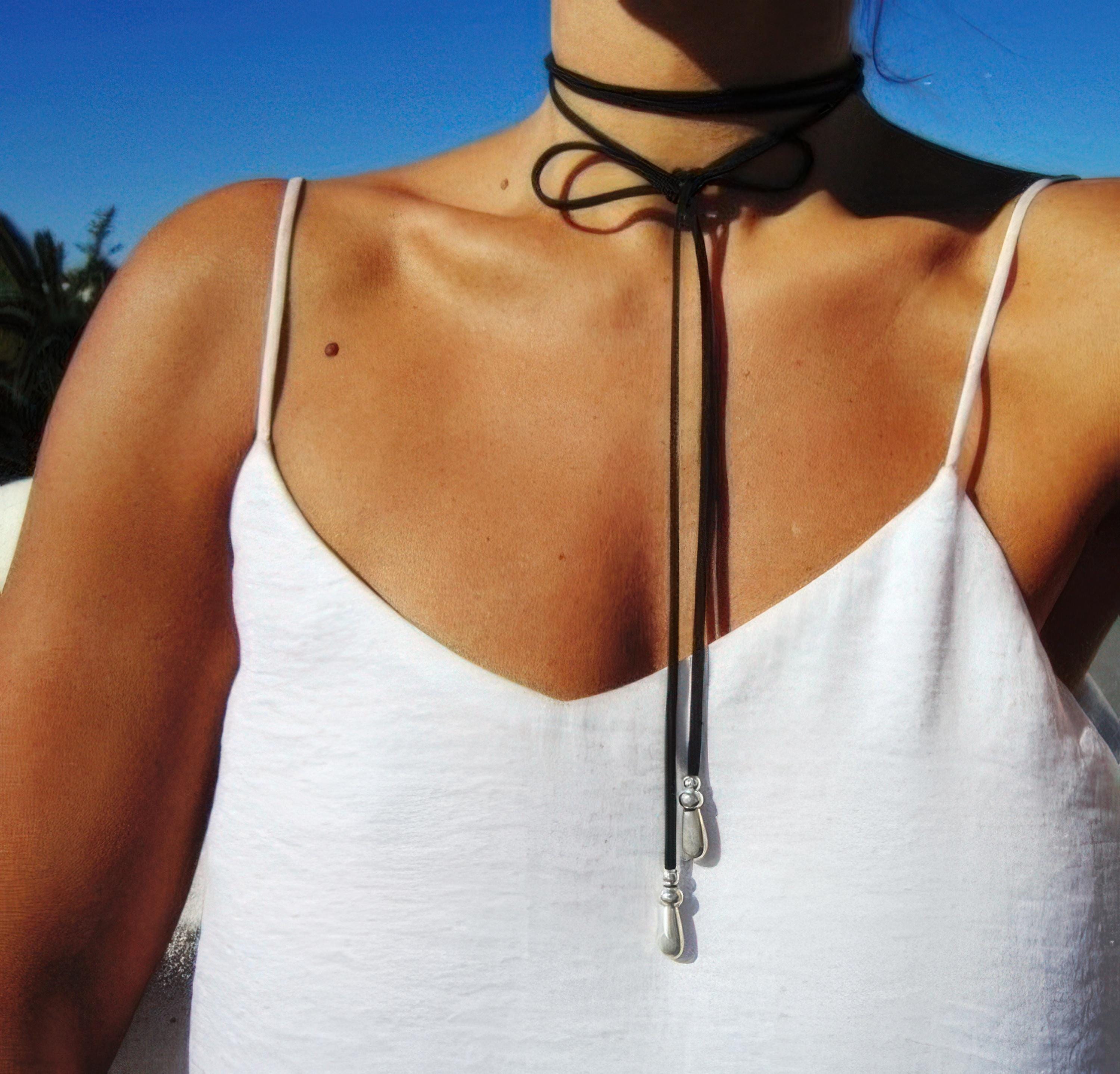 This necklace is made of genuine leather and silver plated beads. All silver pieces are subjected to an anti-allergic process ( nickel and lead free) with a silver plating of 8 microns of sterling silver.