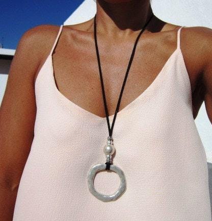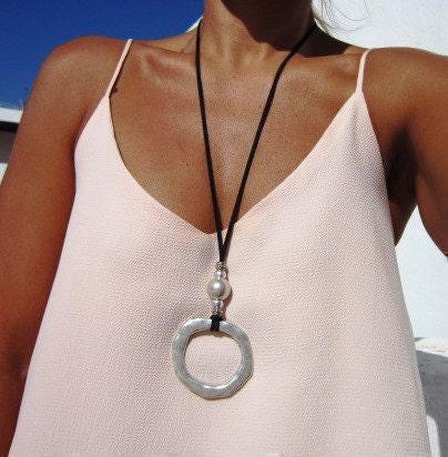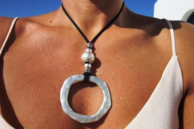 ♥ Elevate your style with this Chunky Statement Pendant Necklaces, a Silver beaded Ring necklace Charm on leather, a bold statement piece for everyday style. It is part of our best selling items, a perfect blend of timeless style handmade jewelry. Silver Chunky charm necklace for couples, necklaces for women made to size to match your style. Designed as a delicate charm necklace, a layered pendant necklace, it’s available in multiple lengths to match your style. at KEKUGI you can find pendant necklaces, beaded necklaces, charm necklaces, choker necklaces, multi-strand layered necklaces and lariat & Y necklaces, unique bohemian jewelry Best selling items designs gift for Her, birthday gift or personalized gifts.