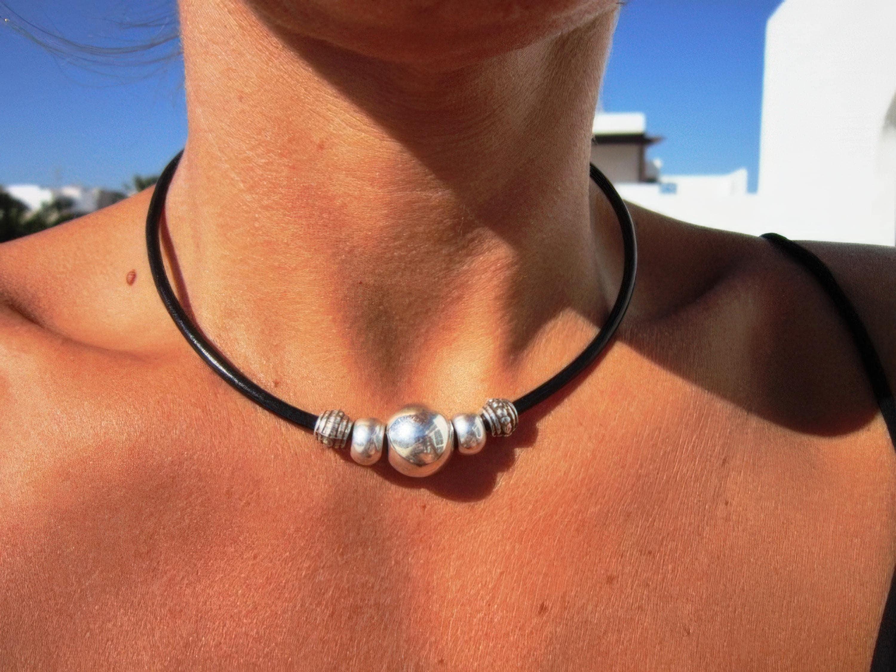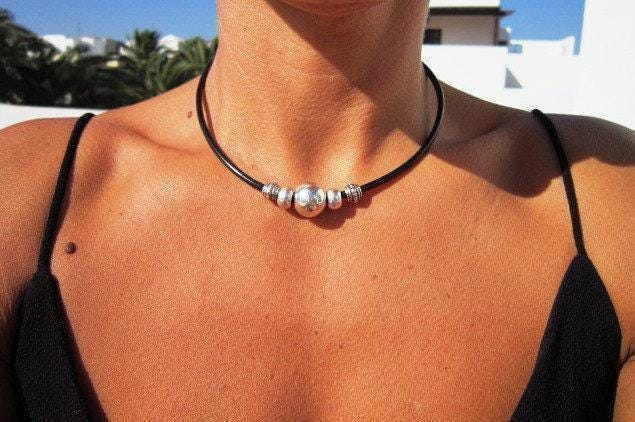♥ This Statement leather and silver beaded simple choker necklace is part of our best selling items, a perfect blend of timeless style handmade jewelry. Silver necklaces for women made to size to match your style. Designed as a delicate charm necklace, a layered pendant necklace or a bold Couples necklace, it’s available in multiple lengths to match your style. at KEKUGI you can find pendant necklaces, beaded necklaces, charm necklaces, choker necklaces, multi-strand layered necklaces and lariat & Y necklaces, unique bohemian jewelry Best selling items designs.