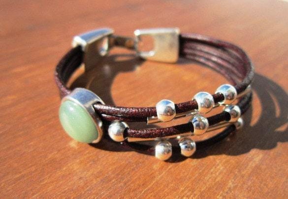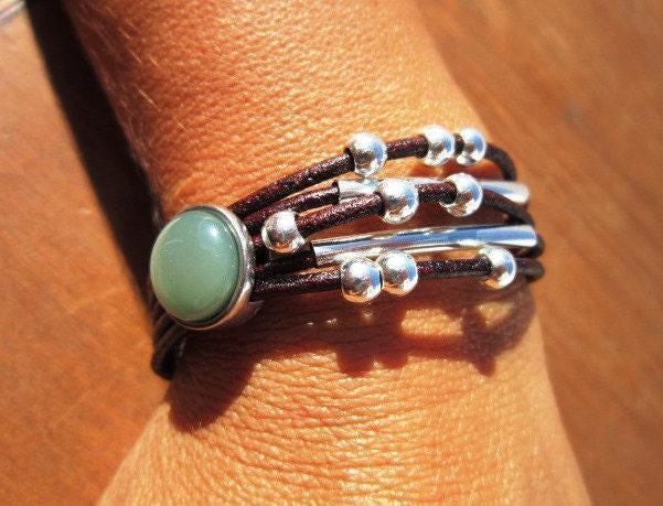 Beaded Leather Bracelet Personalized Gifts • Silver Custom Bracelet • Personalized Handmade Jewelry Gift for Her by Kekugi Bohemian jewelry