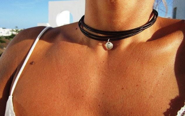 Silver necklaces for women made to size to match your style. Designed as a delicate charm leather and silver choker necklace eternity collar.