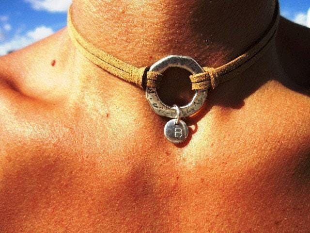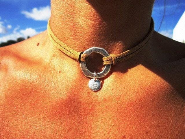 Bohemian Leather Choker Necklace beaded with initial charm • Handmade Jewelry Best selling items