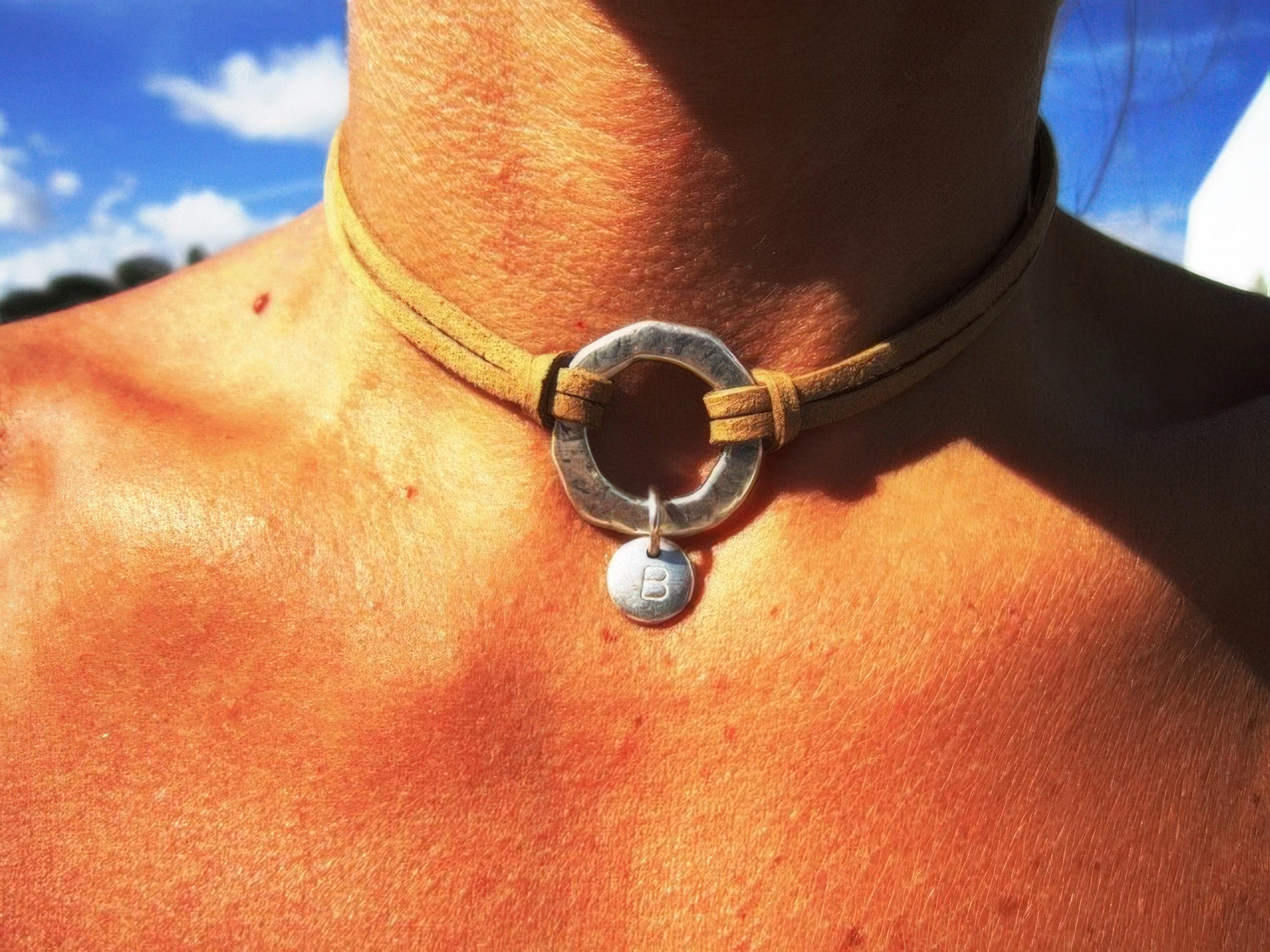 Silver necklaces for women made to size to match your style. Designed as a delicate charm leather and silver choker necklace eternity collar.