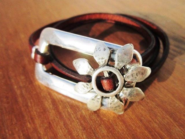 Personalized Leather & Silver Beaded Bracelet Gifts • Handmade Bohemian Jewelry • Birthday Gift or Custom Jewelry Gift for Her by Kekugi