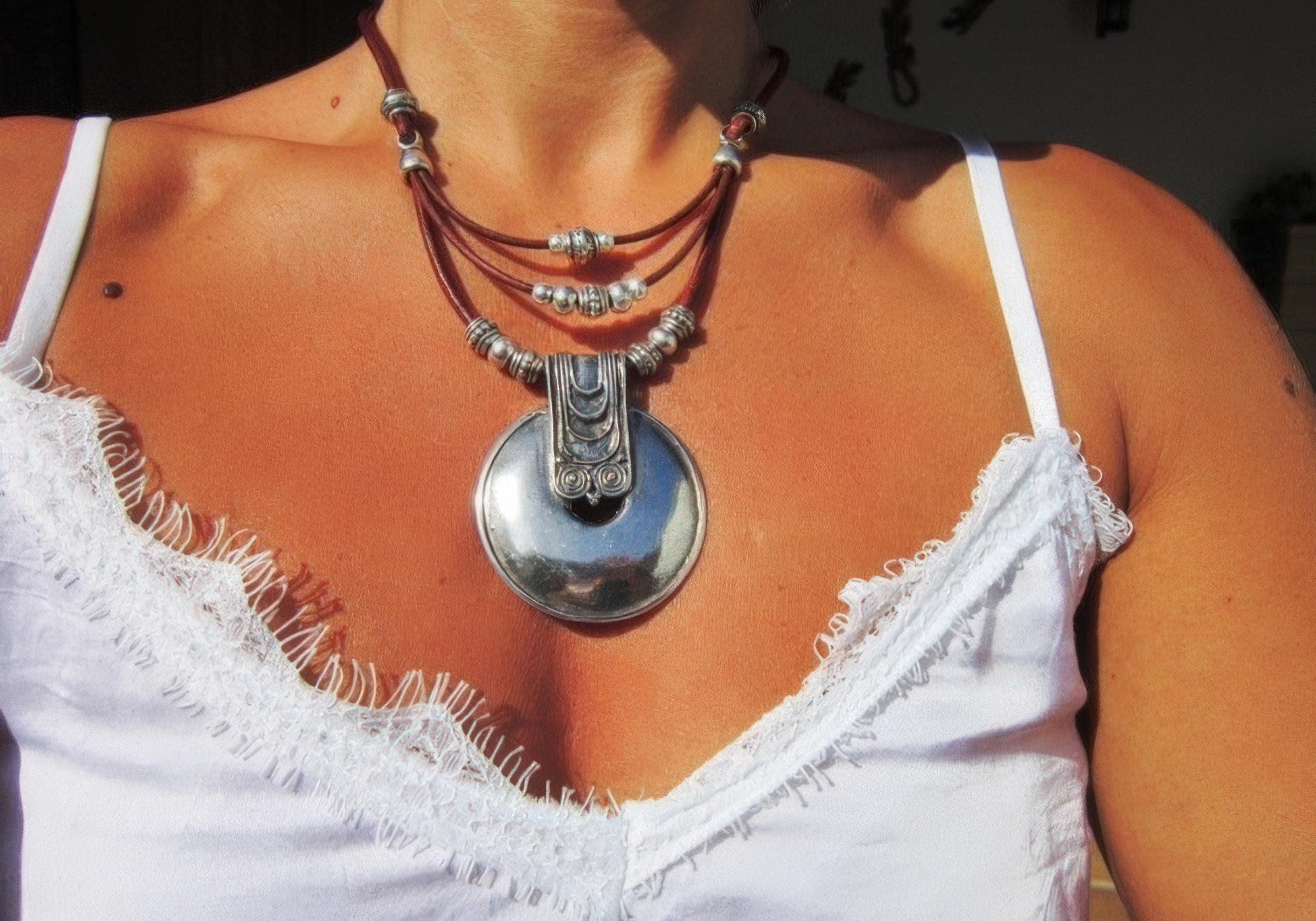 To preserve the look of your leather and silver jewelry, avoid water, cosmetics, and cleaning products. Always store your jewelryin a dry place and use a soft cloth to clean silver parts. Leather may naturally darken slightly over time, giving your jewelry a unique, lived-in feel.
