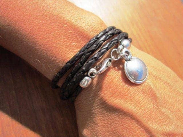 To preserve the look of your leather and silver jewelry, avoid water, cosmetics, and cleaning products. Always store your jewelryin a dry place and use a soft cloth to clean silver parts. Leather may naturally darken slightly over time, giving your jewelry a unique, lived-in feel.