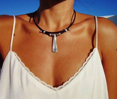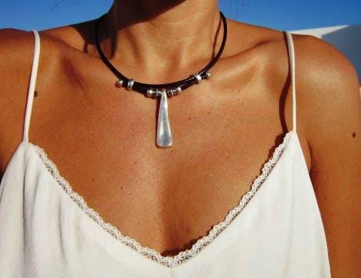 ♥ This Statement simple Boho Luxe leather and silver beaded simple pendant necklace is part of our best selling items, a perfect everyday blend of timeless style handmade jewelry. Silver necklaces for women made to size to match your style. Designed as a delicate charm necklace, a layered pendant necklace or a bold Couples necklace, it’s available in multiple lengths to match your style. at KEKUGI you can find pendant necklaces, beaded necklaces, charm necklaces, choker necklaces, multi-strand layered necklaces and lariat & Y necklaces, unique bohemian jewelry Best selling items designs.