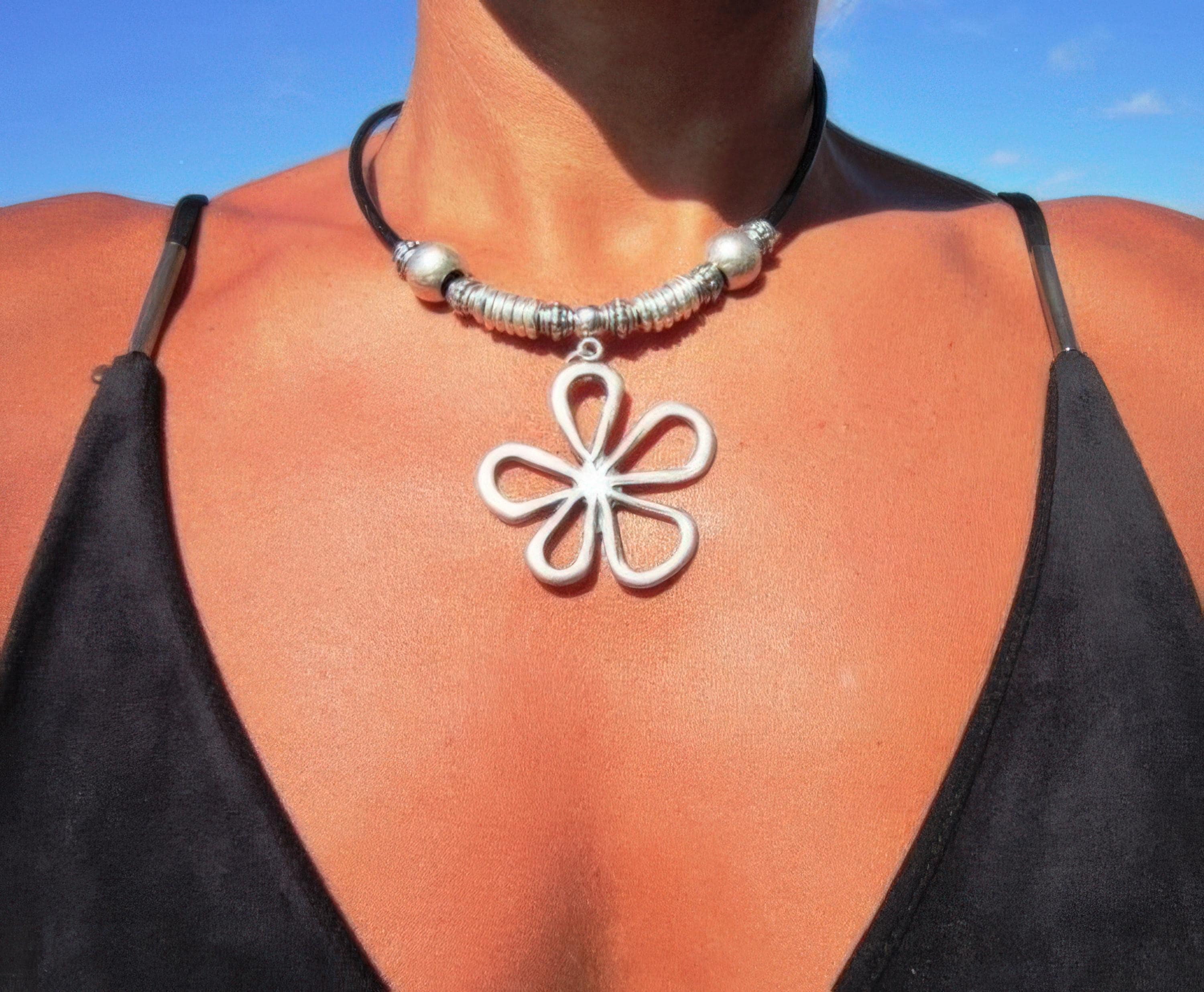 ♥ This Statement silver beaded Daisy pendant flower necklace is part of our best selling items, a perfect blend of timeless style handmade jewelry. Silver matching necklaces for women made to size to match your style. Designed as a delicate charm necklace, a layered pendant necklace, or a bold statement necklace perfect as Couples Necklace it’s available in multiple lengths to match your style. at KEKUGI you can find pendant necklaces, beaded necklaces, charm necklaces, choker necklaces, multi-strand necklaces and lariat & Y necklaces, unique bohemian jewelry Best selling items designs.