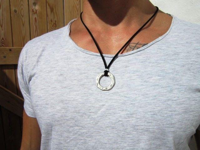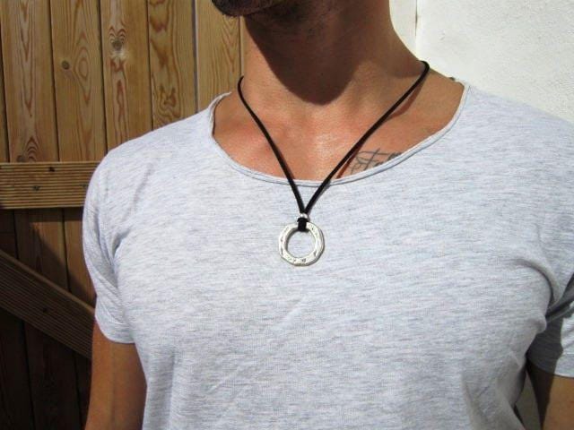 Silver ring Necklace for Men – Charm Necklace Custom Gift Mens Jewelry Gifts for Men Unique Handmade by Kekugi