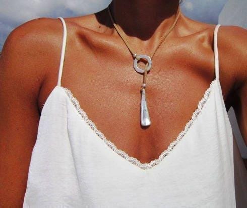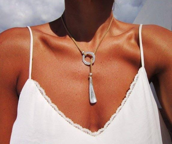 Silver necklaces for women made to size to match your style. Designed as a delicate charm Y Lariat necklace, perfect as layered pendant necklace, or a bold statement necklace, it’s available in multiple lengths to match your style. at KEKUGI you can find pendant necklaces, beaded necklaces, charm necklaces, choker necklaces, multi-strand necklaces and lariat & Y necklaces, unique bohemian summer jewelry design necklace. Top sellers Matching necklaces handmade products.