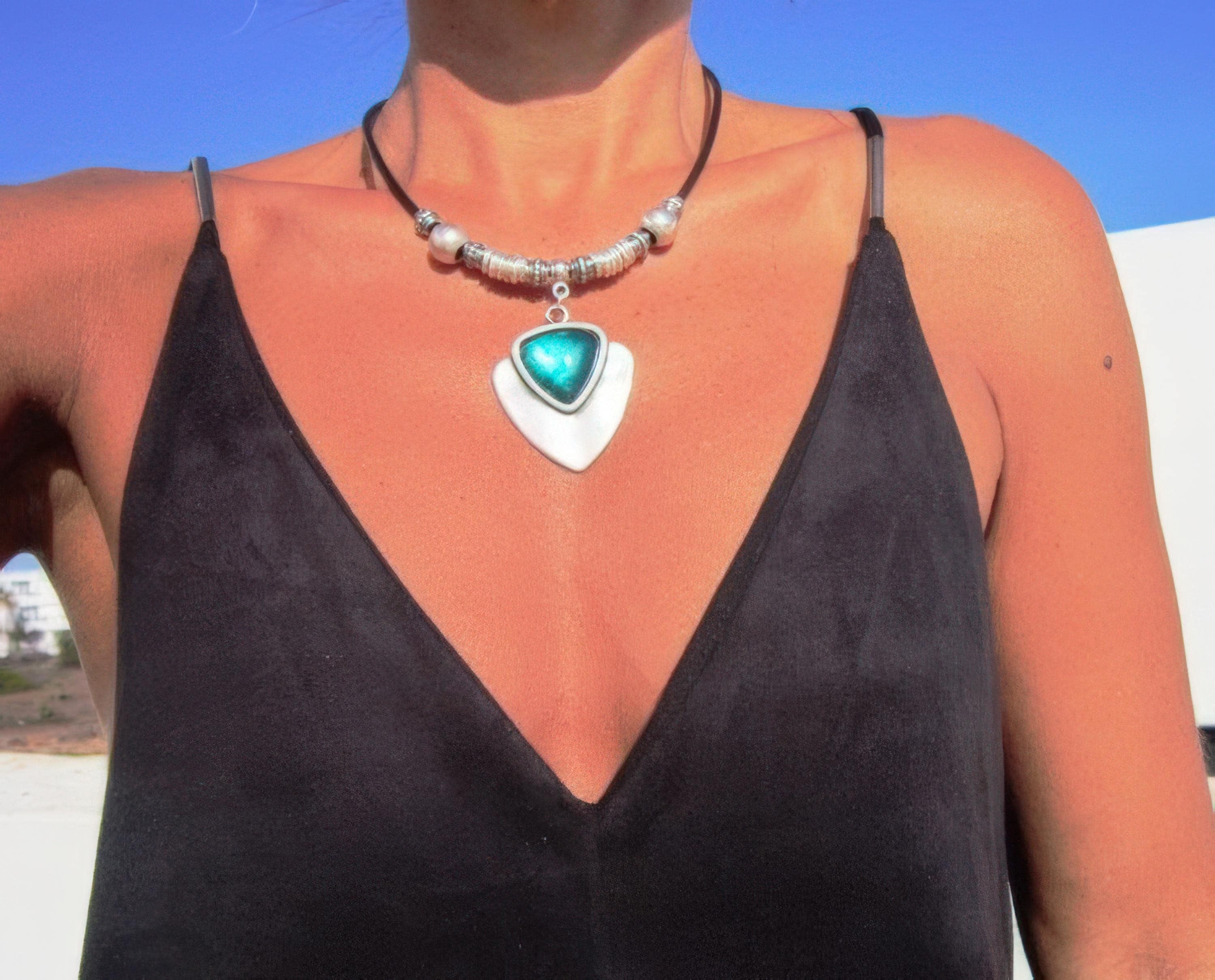 To preserve the look of your leather and silver jewelry, avoid water, cosmetics, and cleaning products. Always store your jewelryin a dry place and use a soft cloth to clean silver parts. Leather may naturally darken slightly over time, giving your jewelry a unique, lived-in feel.