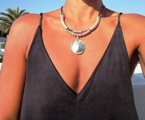 ♥ This Statement leather and silver beaded pendant necklace is part of our best selling items, a perfect blend of timeless style handmade jewelry. Silver necklaces for women made to size to match your style. Designed as a delicate charm necklace, a layered pendant necklace or a bold Couples necklace, it’s available in multiple lengths to match your style. at KEKUGI you can find pendant necklaces, beaded necklaces, charm necklaces, choker necklaces, multi-strand layered necklaces and lariat & Y necklaces, unique bohemian jewelry Best selling items designs.