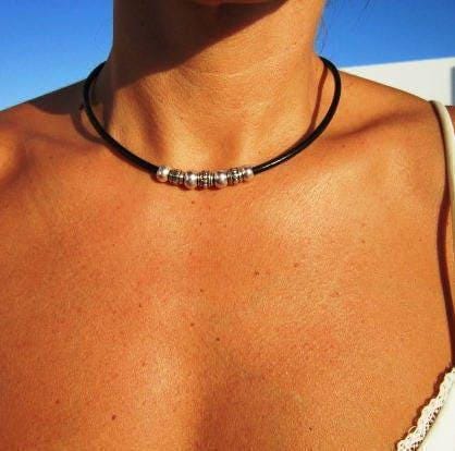 ♥ This Simple Statement silver beaded leather choker necklace is part of our best selling items, a perfect blend of timeless style handmade jewelry. Silver necklaces for women made to size to match your style. Designed as a delicate charm necklace, a layered pendant necklace, or a bold statement necklace perfect as Couples Necklace it’s available in multiple lengths to match your style. at KEKUGI you can find pendant necklaces, beaded necklaces, charm necklaces, choker necklaces, multi-strand necklaces and lariat & Y necklaces, unique bohemian summer jewelry designs.