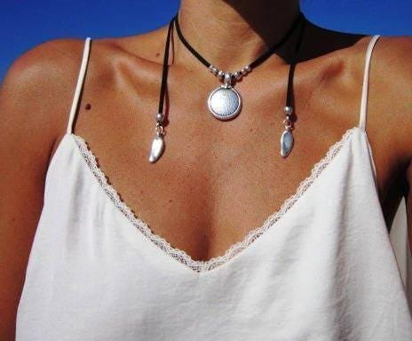 ♥ Elevate your style with these Chunky Statement Pendant Necklace, Silver Beaded and Leather Charm necklace layered in a bold statement piece for everyday style. Part of our best selling items is a perfect blend of timeless style handmade neotribal jewelry. Silver necklaces for women made to size to match your style. Designed as a delicate simple charm necklace, a layered pendant necklace, or a bold statement necklace, it’s available in multiple lengths. at KEKUGI you can find pendant necklaces, beaded necklaces, charm necklaces, choker necklaces, multi-strand necklaces and lariat & Y necklaces, Unique Bohemian jewelry top sellers designs.
