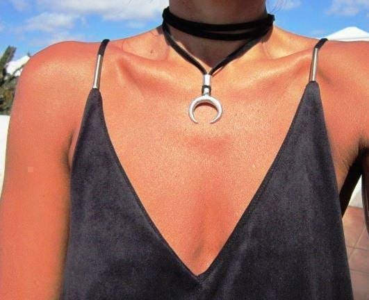 Statement Chunky silver pendant crescent moon Necklace Handmade Products • layered Personalized handmade Jewelry