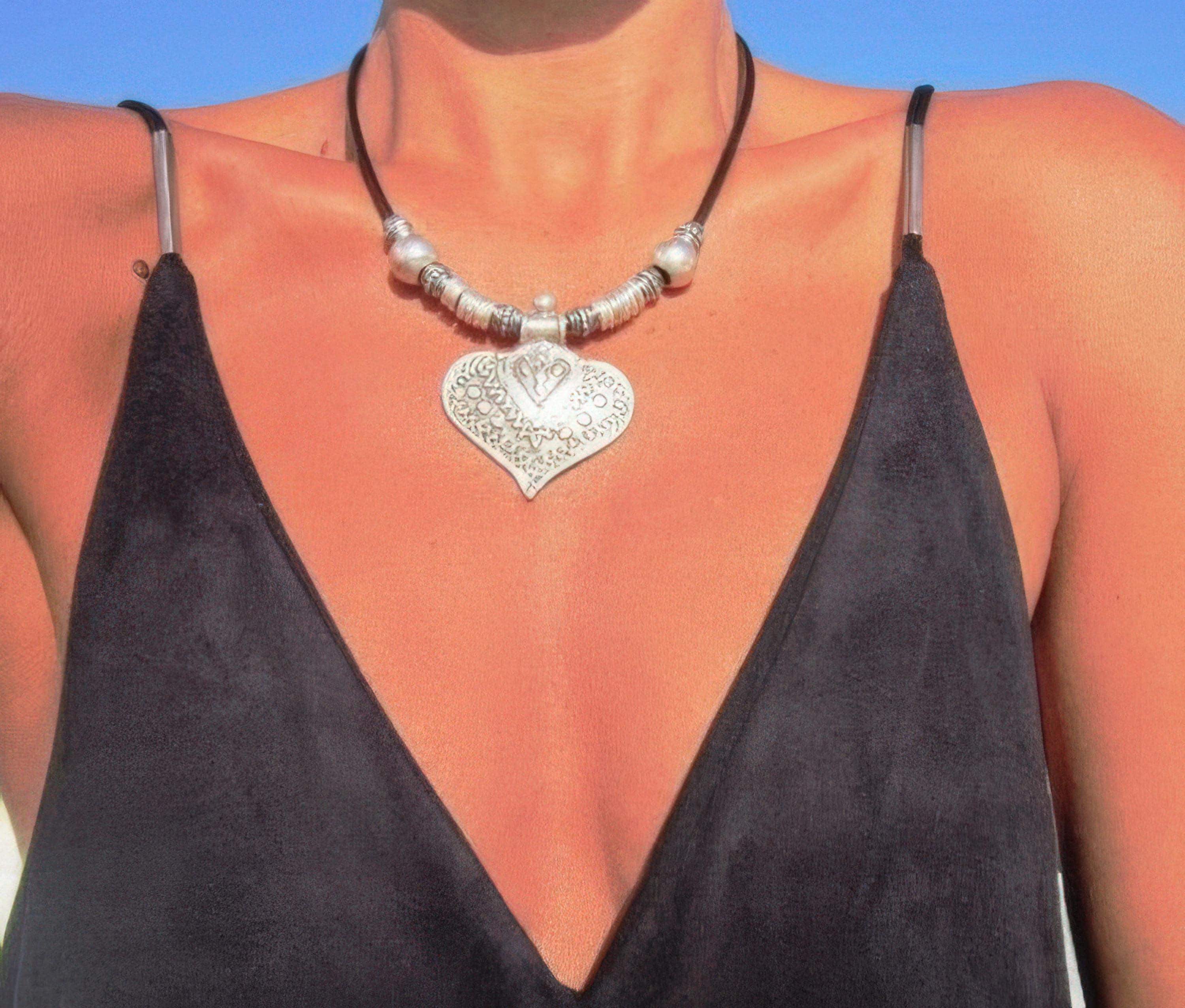 ♥ This Statement silver beaded heart pendant necklace is part of our best selling items, a leather choker necklace that makes a perfect couples necklace gift for her a unique blend of timeless style handmade jewelry. Silver necklaces for women made to size to match your style. Designed as a delicate charm necklace, a layered pendant necklace, or a bold statement necklace perfect as Couples Necklace it’s available in multiple lengths to match your style. At KEKUGI you can find pendant necklaces, beaded necklaces, charm necklaces, choker necklaces, multi-strand necklaces and lariat & Y necklaces, Custom Bohemian jewelry Best selling items designs.