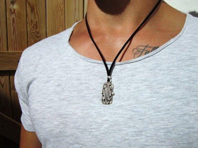 This pendant necklace is a handcrafted silver necklace, designed as a stylish mens necklace and bold necklace for men. It’s the perfect mix of handmade jewelry and modern mens jewelry, ideal as a charm necklace for everyday wear. Whether you're searching for gifts for men, a special gift for him, or a unique gift for men, this piece stands out. Made to size to turn it into personalized jewelry, personalized gifts, or a thoughtful custom gift made just for him.