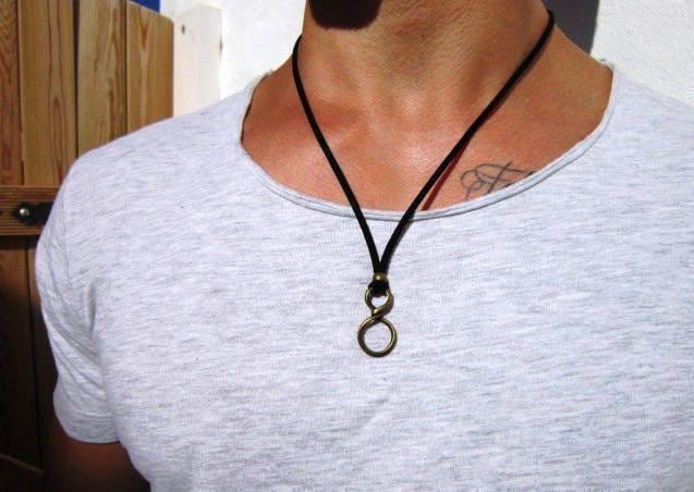 Mens Couples Necklace Leather Pendant Necklace – Handmade Jewelry Gift for Him Personalized Jewelry by Kekugi