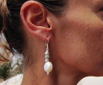 These pearl silver earrings are a beautiful pair of drop earrings with a beaded, dainty finish — the perfect boho earrings for everyday wear. Designed as lightweight statement earrings, they combine the charm of cute earrings with the uniqueness of handmade jewelry. A meaningful gift for her, ideal for those who love personalized jewelry and unique earrings.