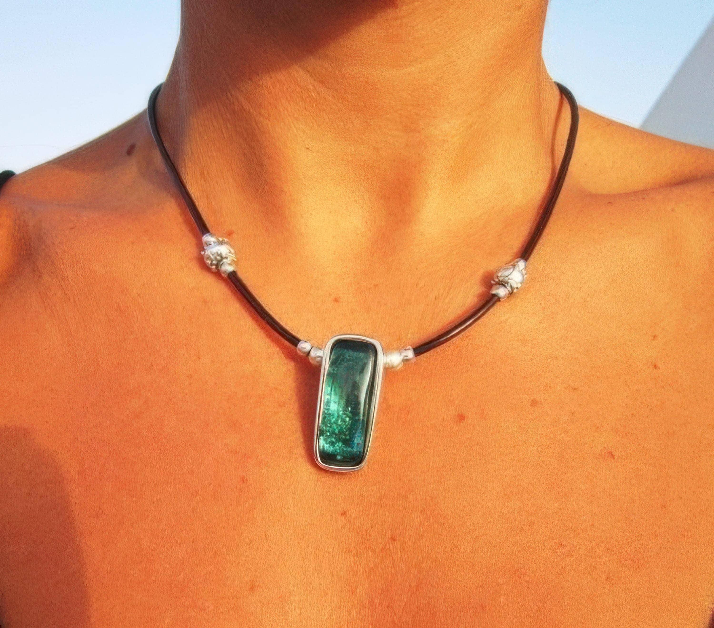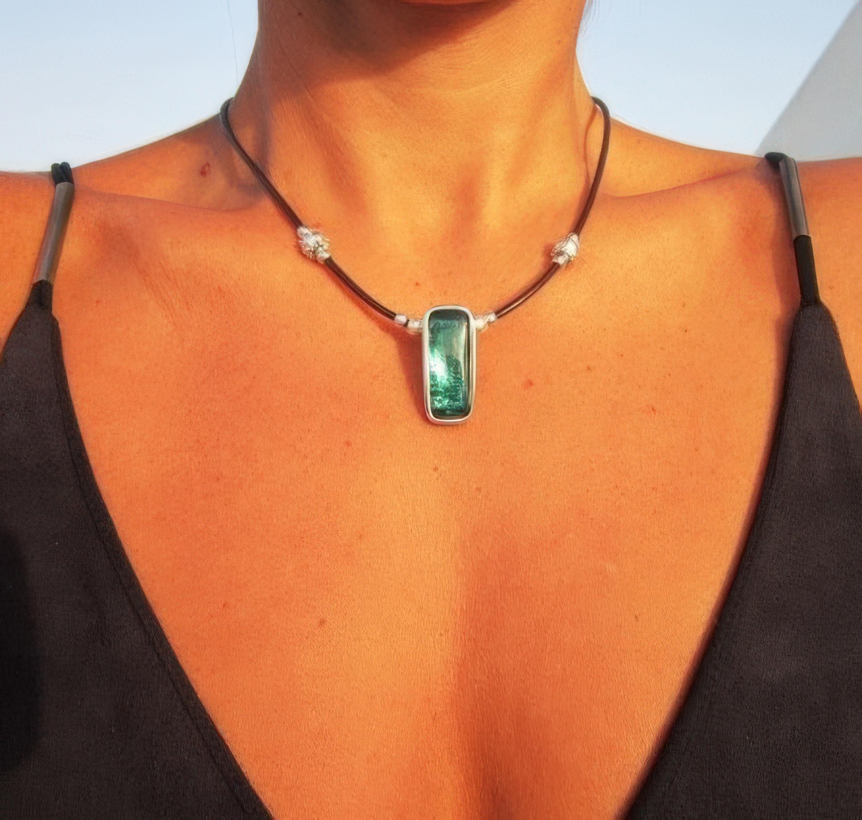 • The Stone is a Green Resin cabochon securely set onto the pendant base.