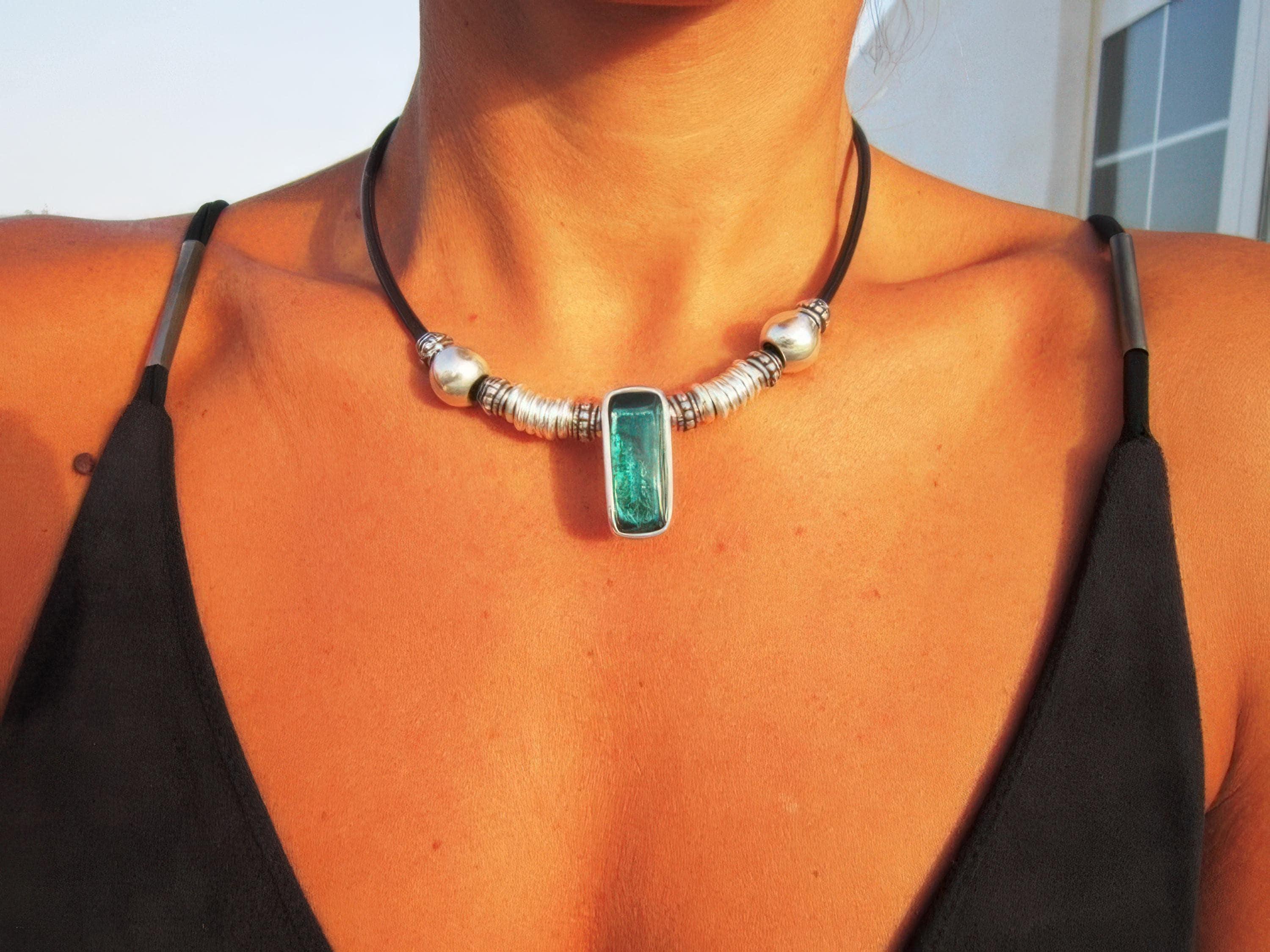• The Stone is a Green Resin cabochon securely set onto the pendant base.