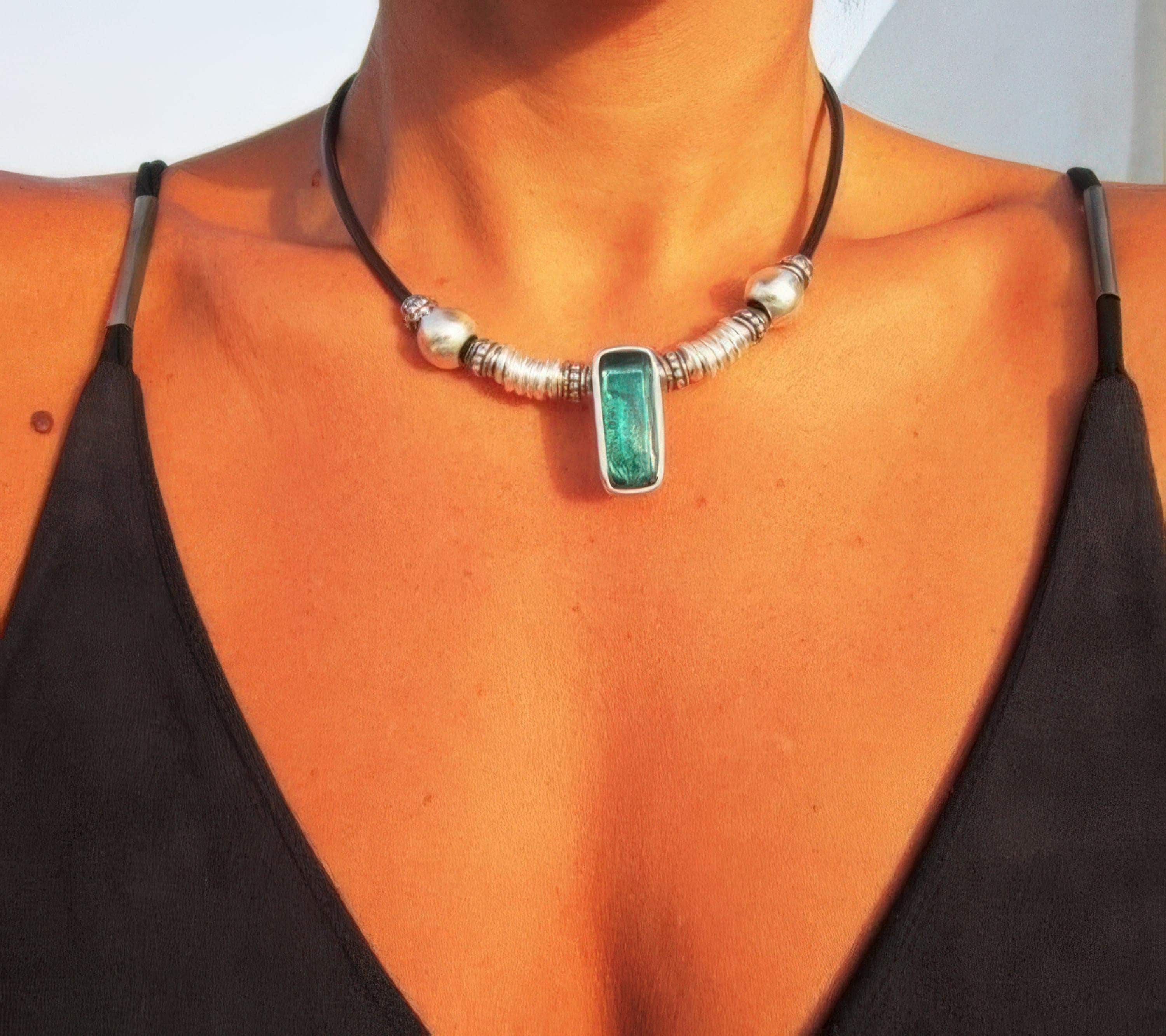 To preserve the look of your leather and silver jewelry, avoid water, cosmetics, and cleaning products. Always store your jewelryin a dry place and use a soft cloth to clean silver parts. Leather may naturally darken slightly over time, giving your jewelry a unique, lived-in feel.