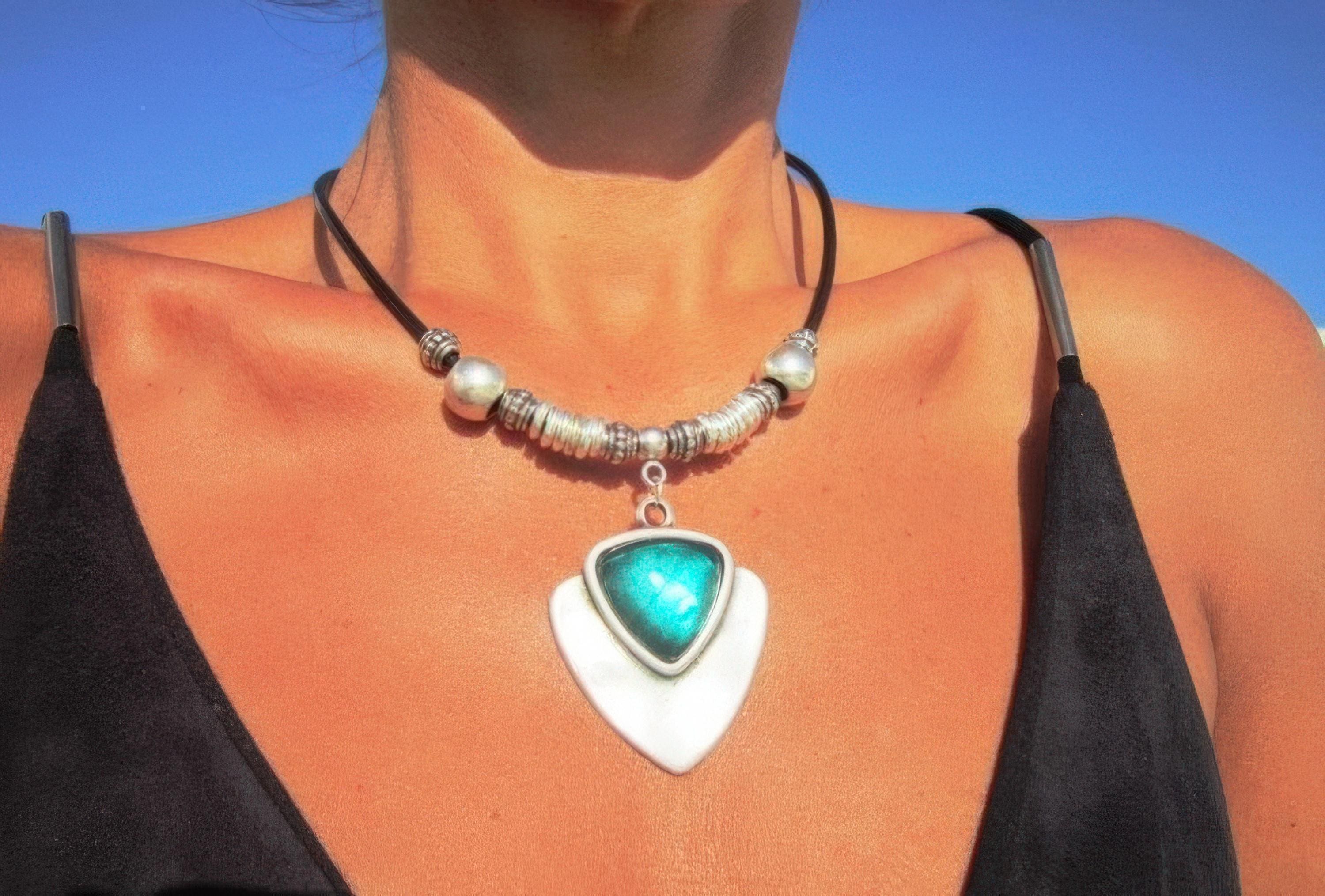• The Stone is a Green Resin cabochon securely set onto the pendant base.