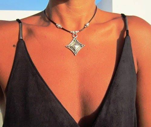 ♥ This Statement leather and silver beaded pendant necklace is part of our best selling items, a perfect blend of timeless style handmade jewelry. Silver necklaces for women made to size to match your style. Designed as a delicate charm necklace, a layered pendant necklace or a bold Couples necklace, it’s available in multiple lengths to match your style. at KEKUGI you can find pendant necklaces, beaded necklaces, charm necklaces, choker necklaces, multi-strand layered necklaces and lariat & Y necklaces, unique bohemian jewelry Best selling items designs.