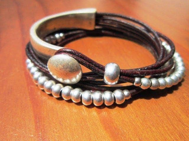To preserve the look of your leather and silver jewelry, avoid water, cosmetics, and cleaning products. Always store your jewelryin a dry place and use a soft cloth to clean silver parts. Leather may naturally darken slightly over time, giving your jewelry a unique, lived-in feel.