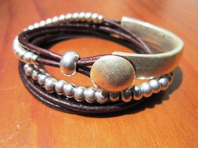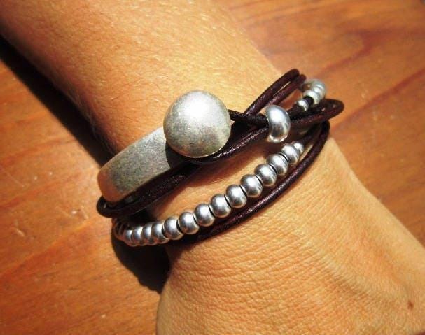 Beaded Leather Bracelet personalized gifts • Silver custom Bracelet • Personalized handmade Jewelry Gift for her by kekugi bohemian jewelry