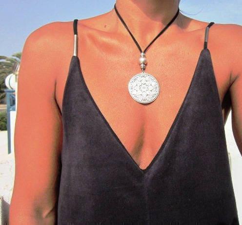 ♥ Elevate your style with these Chunky Statement Pendant Necklaces, Silver Beaded and Leather Long Charm necklace, a bold statement piece for everyday style.It is part of our best selling items, a perfect blend of timeless style handmade neotribal jewelry. Silver Chunky charm necklace for couples, necklaces for women made to size to match your style. Designed as a delicate charm necklace, a layered pendant necklace, it’s available in multiple lengths to match your style. at KEKUGI you can find pendant necklaces, beaded necklaces, charm necklaces, choker necklaces, multi-strand layered necklaces and lariat & Y necklaces, unique bohemian jewelry Best selling items designs gift for Her, birthday gift or personalized gifts.